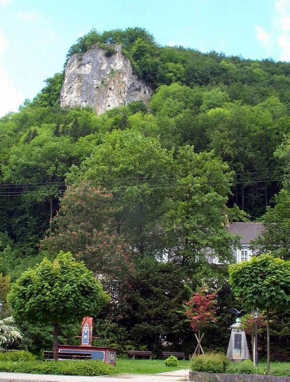 Adlerbrunnen mit Schloss und Himmelsfelsen